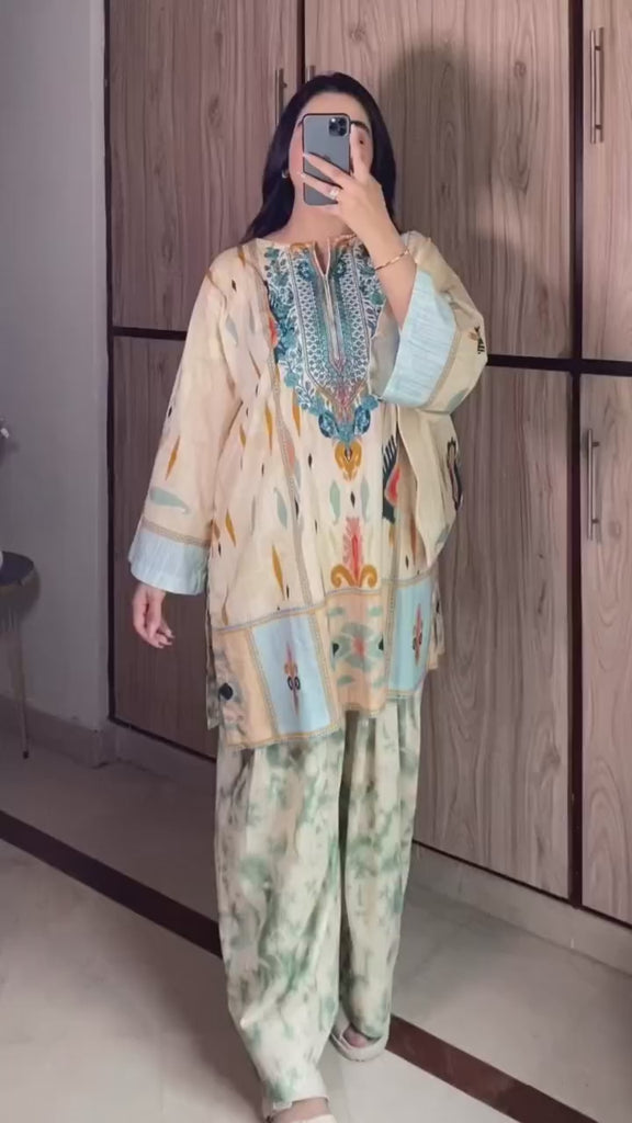 Perfect for casual outings, day events, or travel wear, this co-ord set combines traditional artistry with modern ease, making it a versatile addition to your wardrobe.
