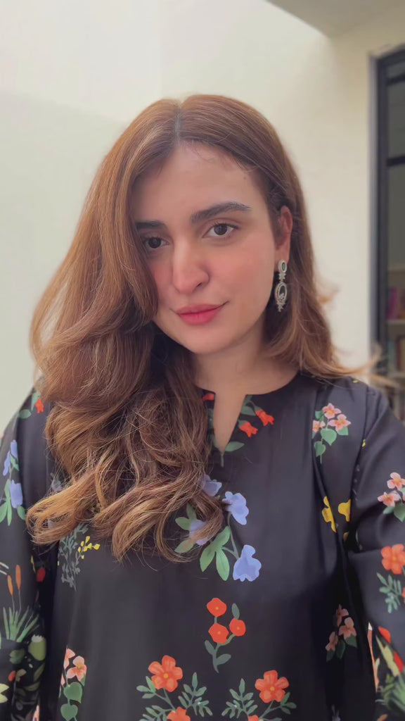 Step out in sophisticated allure with the Black Orchid Kaftan Dress, an exquisite floor-length silhouette crafted from premium, breathable Muslin. This captivating design features a deep midnight canvas adorned with a vibrant garden of botanical motifs in radiant yellows, sun-kissed oranges, and soft lavenders. The relaxed, flowing cut is beautifully framed by intricate, contrasting borders along the wide sleeves and hem, adding a touch of artisanal detail to its ethereal drape. The natural softness and elegant drape of Muslin ensure unparalleled comfort and a flawless finish, making this the perfect statement piece for evening soirées, destination weddings, and luxury wedding-guest wear.