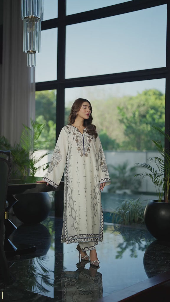 Crafted From Soft, Breathable Fabric, This Off White Cord Set Features Delicate Beige Brown Pattern Prints That Add A Touch Of Serene Sophistication To Your Look, The Relaxed Fit Ensures All-Day Ease.