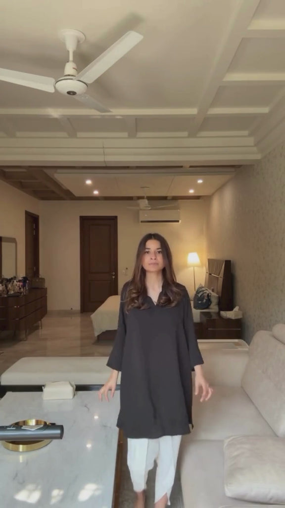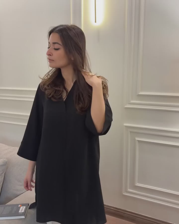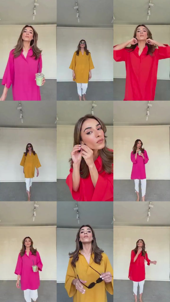Introducing the Vividity coord set, a study in colour and effortless style, expertly crafted from luxurious natural crepe for a perfect drape and soft feel. This striking two-piece features a relaxed, oversized tunic with an elegant mandarin collar and chic three-quarter batwing sleeves, offering a modern, fluid silhouette. The tunic pairs seamlessly with coordinating tulip-style trousers that feature a wrapped, asymmetric hem, adding a unique architectural element to the look. Available in a rich palette of Red, Classic Black, , Hot Pink, Deep Navy Blue, and Royal Purple, this set is designed for the woman who values bold colour, comfort, and sophisticated contemporary design.